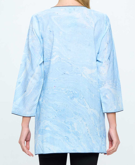 Hand Tie and Dye Blue Marble Print Soft Cotton Tunic Top