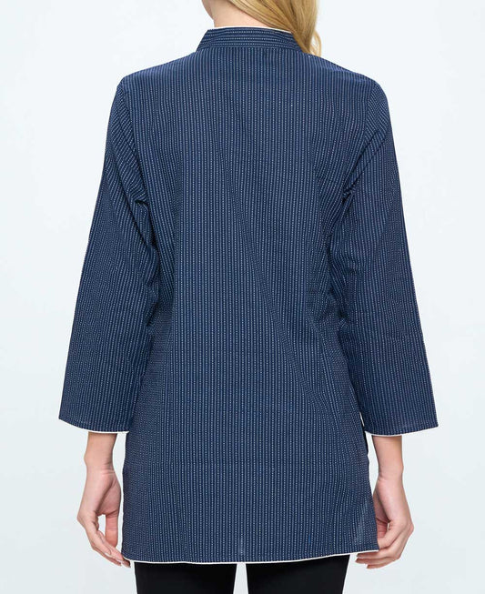 SAVE 50%Kantha Stitch Blue Cotton Tunic Top