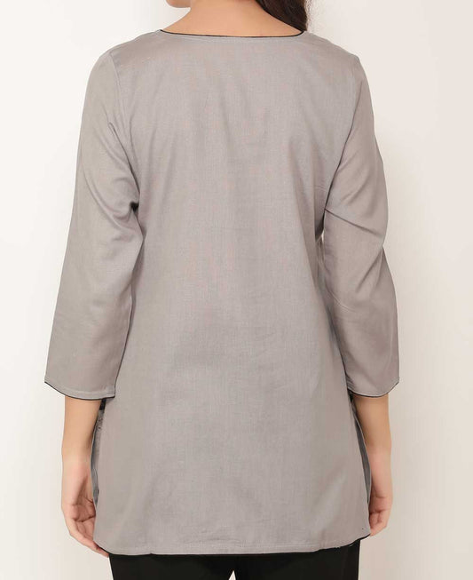 Peacock Lotus Mandala Grey and Black Cotton Tunic Top
