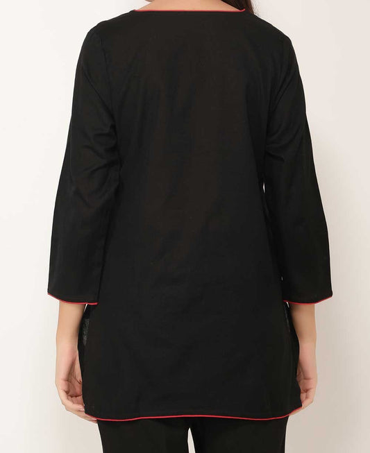 Root Chakra Black And Red Cotton Tunic Top