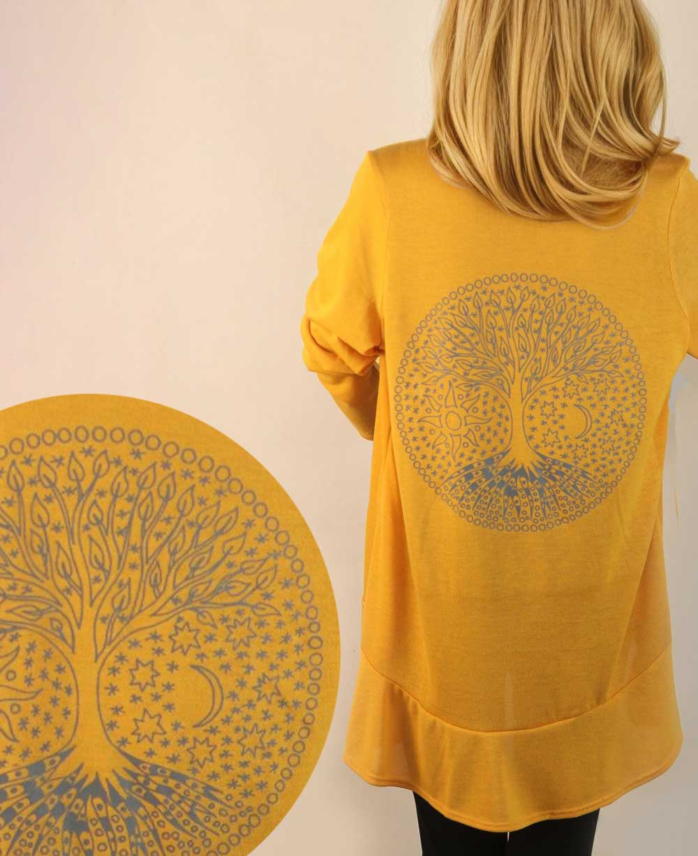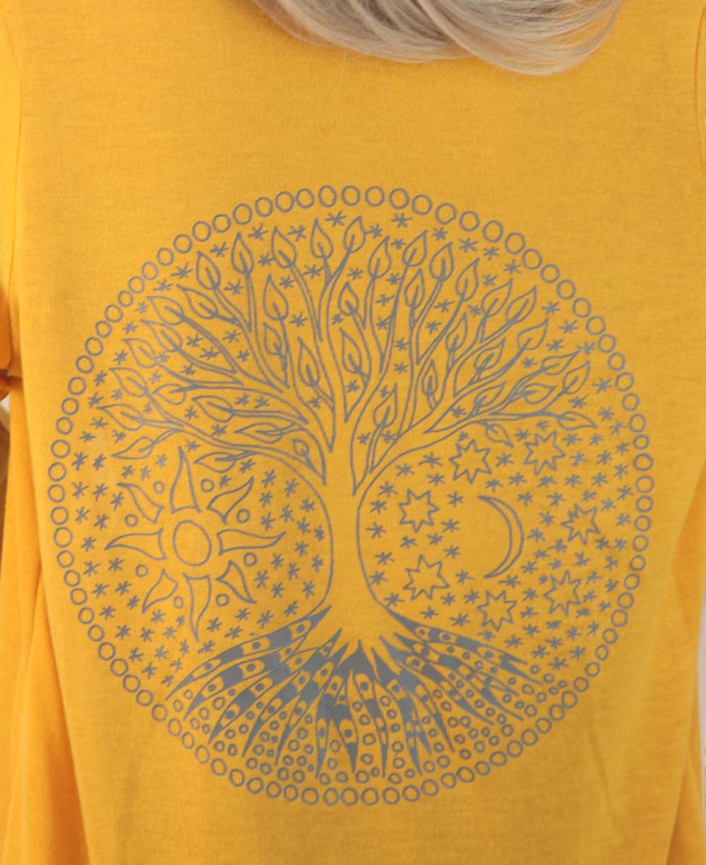 A meaningful accessory for in-between seasons, this lightweight semi-sheer cardigan features a mystical Tree of Life with the moon, sun, and stars. The Tree of Life represents the interconnectedness of all living things, signifying the deep-rooted connection between Earth, nature, and the cosmos.